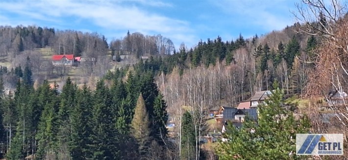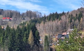 Działka otoczona dużą ilością zieleni, z jednej strony granicząca z lasem, z okien i balkonu domu z widokiem na
