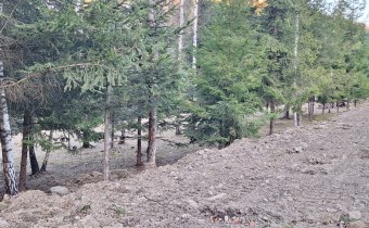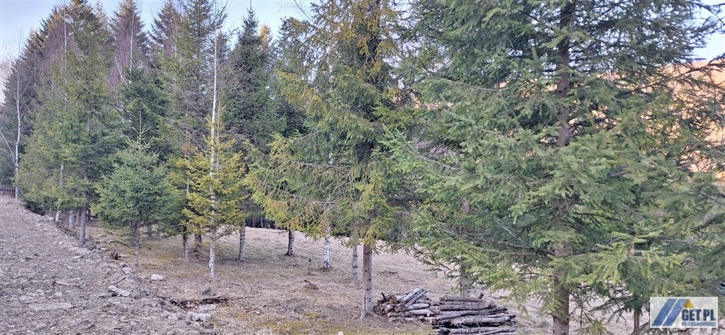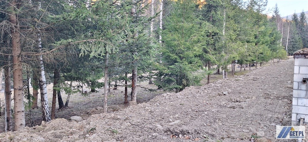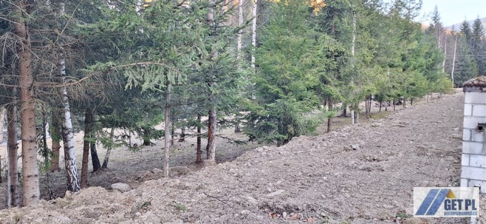 Teren prawie płaski, z miejscem pod zabudowę, a dalej opadający do wspomnianego górskiego potoku.
