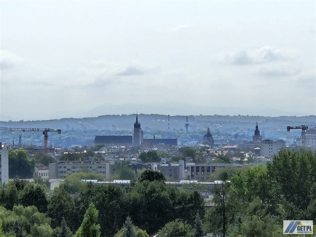 balkon z pięknym widokiem na Wawel i panoramę miasta